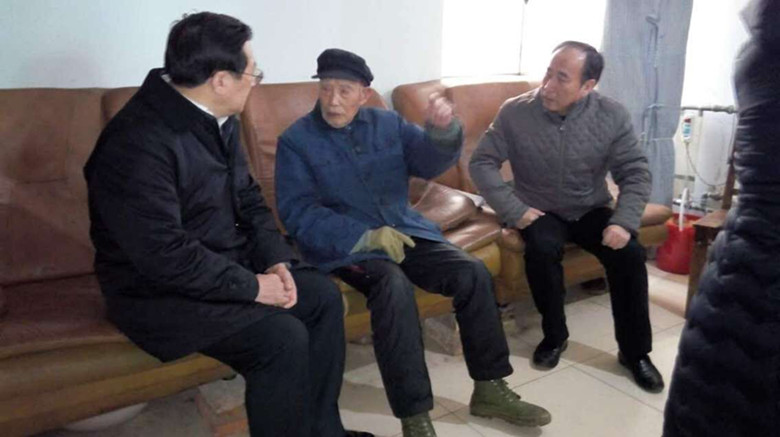 1月20上午,省總工會副主席曹海(右一)、市總工會主席李強(qiáng)(左一)一行來到公司全國勞模、百歲老人鄭有根家中走訪慰問,不僅帶去了慰問品和慰問金,也帶去了黨委、政府以及工會組織的問候和溫暖。集團(tuán)公司工會副主席李嵐琴、公司黨委書記、經(jīng)理孫政權(quán)等陪同慰問。(司宣 司工)