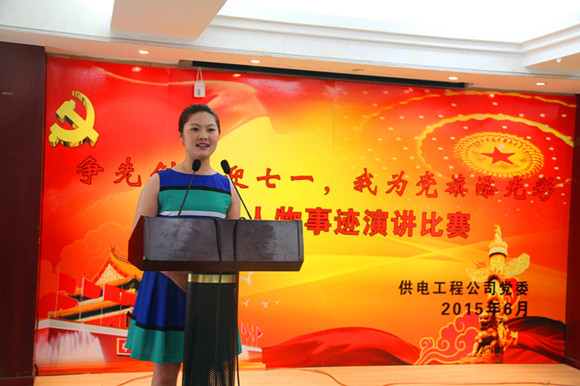6月15日下午,公司在淮鹽大酒店三樓會議室隆重地舉行了“爭先創(chuàng)優(yōu)迎七一,我為黨旗添光彩”先進事跡演講比賽。公司8個代表隊,經(jīng)過一個多小時激烈的角逐,徐圩供電所的金陽演講的《平凡鑄就輝煌》榮獲一等獎。機關(guān)、灌西供電所選手獲得二等獎,青口供電所、臺北供電所、臺南供電所選手獲得三等獎,宋跳農(nóng)場、巨龍市場選手獲得參與獎。(陳捷)