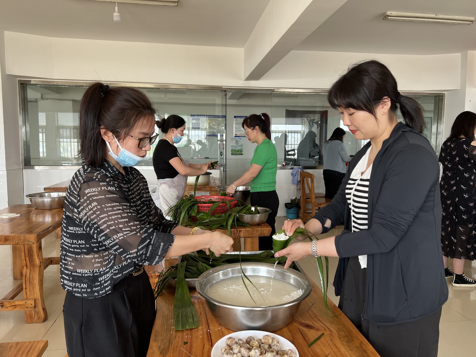 卷起粽葉;填入糯米餡;粽葉上下翻飛;成型的粽子纏上線(xiàn)……包粽子高手云集賽場(chǎng),包粽子的過(guò)程可謂行云流水。一雙雙巧手揮動(dòng)間,一片片清香的粽葉、一粒粒晶瑩的糯米,瞬間變成了一個(gè)個(gè)誘人的粽子。不多會(huì)兒的功夫,一串串碧綠飽滿(mǎn)的粽子便堆積在盆中,引得圍觀(guān)者嘖嘖贊嘆。女工們有說(shuō)有笑,熱熱鬧鬧,有的還忍不住現(xiàn)學(xué)現(xiàn)包,處處洋溢著濃郁的節(jié)日氣氛。經(jīng)過(guò)一個(gè)多小時(shí)的奮戰(zhàn),來(lái)自機(jī)關(guān)的石雯以139個(gè)的成績(jī)榮獲冠軍。