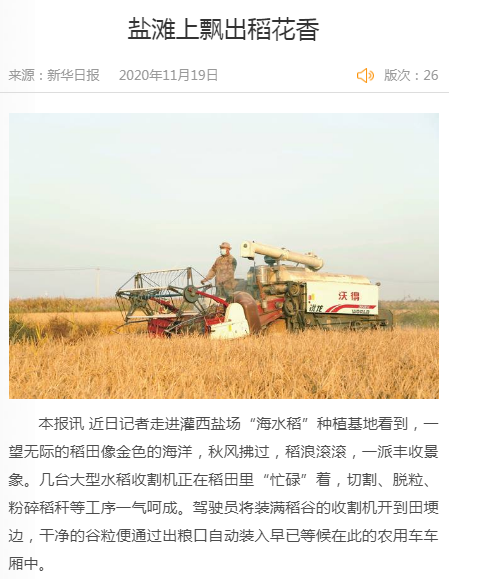 正在收割的這片單季“海水稻”稻田有200多畝,去年剛復(fù)墾完成,鹽度在5‰左右,屬于鹽度偏高的鹽堿地。今年試種的單季水稻有470多畝,選取耐鹽度較好的“南粳9108”水稻品種,每畝產(chǎn)量預(yù)計(jì)800斤左右。