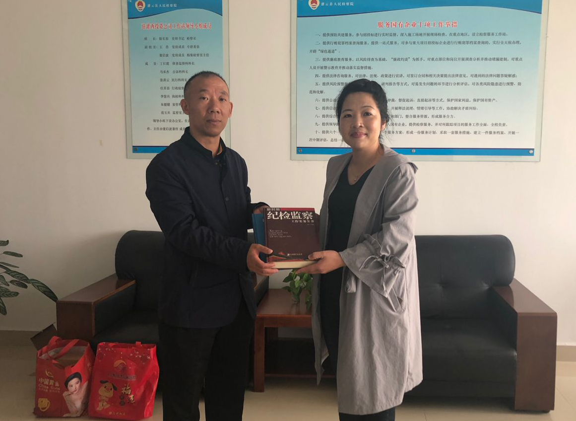 10月17日,灌云縣檢察院監(jiān)察室主任范玉兵來(lái)我公司調(diào)研工作,進(jìn)一步加強(qiáng)檢察院與企業(yè)溝通和了解,促進(jìn)“檢企共建”活動(dòng)深入開展。