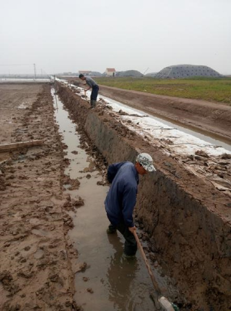 根據公司生產部門統(tǒng)一要求,在每個生產班組新灌一塊結晶池,埒南制鹽分公司精心布署,細化安排,嚴控時間節(jié)點,抓頭、抓早、抓緊,對生產班組新上的格塊堅持做到現場指導,跟蹤督察,不符合灌池質量標準的堅決不準上馬。(圖為職工在修整結晶池堰)莊忠明