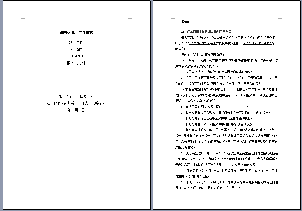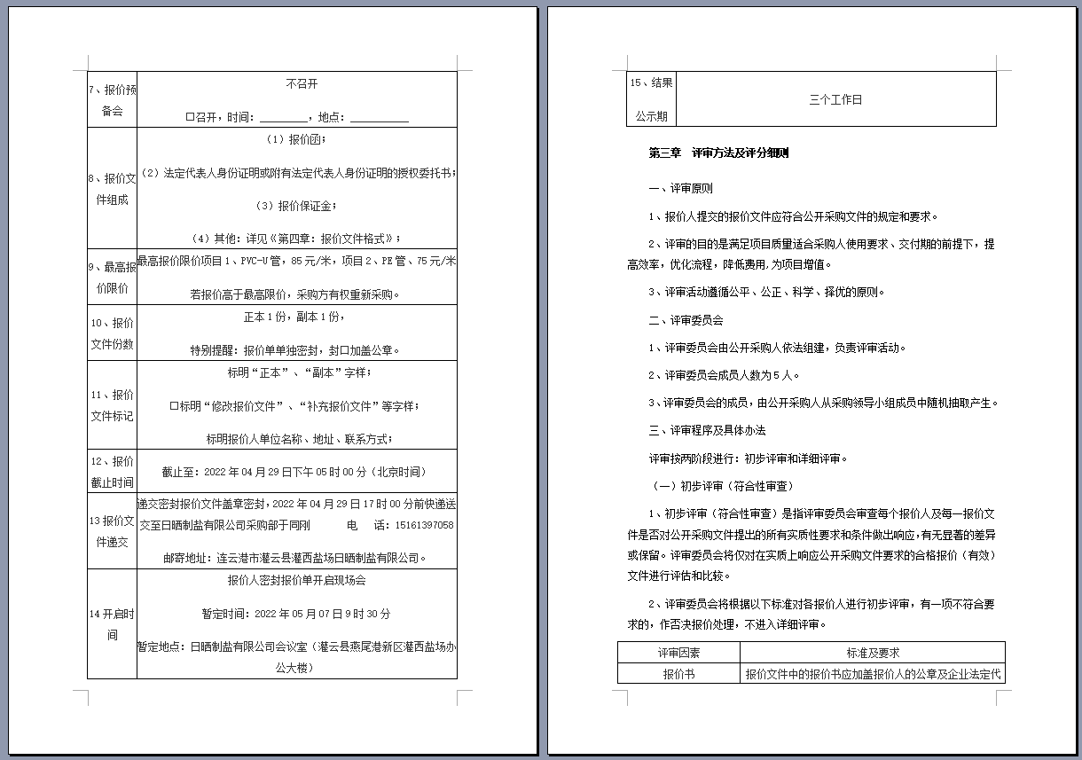 連云港市工投集團(tuán)日曬制鹽有限公司管道采購(gòu)項(xiàng)目 公開采購(gòu)文件