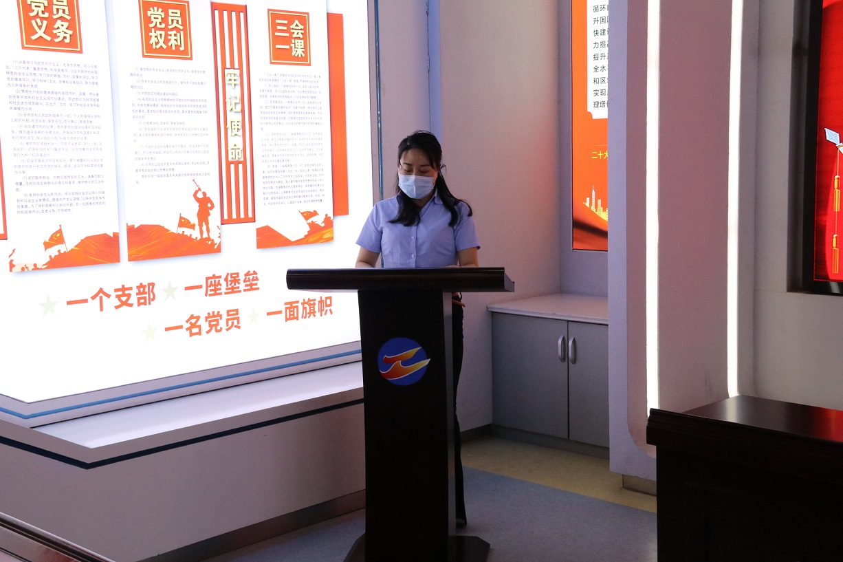 隨后,支部書記徐兵為大家上了一堂題為“增強黨性修養(yǎng),筑牢使命擔當”的專題黨課,他結(jié)合黨的歷史及當前國內(nèi)國際局勢,生動的闡釋黨的革命精神和光輝歷程,旨在讓新黨員感受到了黨的神圣,進一步激發(fā)黨員的愛國熱情和奮斗精神,激勵廣大黨員黨員以自身的實際行動積極實踐誓詞,這堂黨課對于新老黨員們來說,都是一次寶貴的學習機會。黨課最后,支部書記徐兵帶領(lǐng)新老黨員一起,面向鮮紅的黨旗,舉起右拳,重溫入黨誓詞。