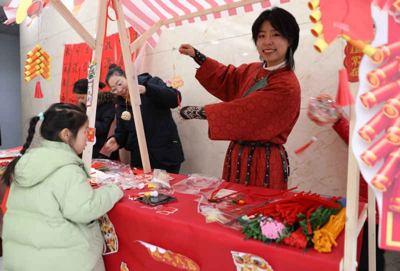 剪窗花、寫對(duì)聯(lián),是迎接新年必不可少的傳統(tǒng)習(xí)俗,承載了我們對(duì)新一年的美好期望。在傳統(tǒng)民俗區(qū),大家沉浸式體驗(yàn)這些傳統(tǒng)習(xí)俗,有的揮毫潑墨,“寫春送福”,有的剪紙寄情,剪出各種各樣象征生肖、團(tuán)圓、吉祥的窗花,不一會(huì)兒,一幅幅滿載新年祝福的春聯(lián),一張張年味濃濃的窗花,就展現(xiàn)在大家面前。