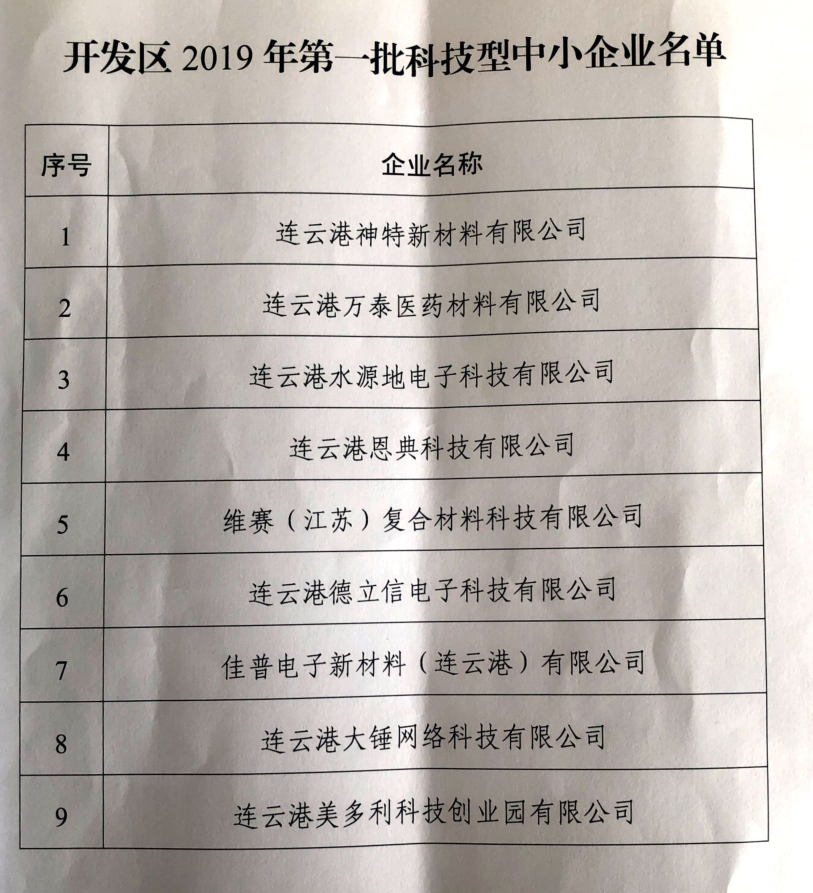 近日,公司被經(jīng)濟技術(shù)開發(fā)區(qū)管委會認定為“2019年第一批科技型中小型企業(yè)”。