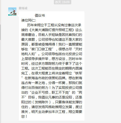 ? ? ? ??精兵強(qiáng)將,火速支援。疫情來勢兇猛,很多人都難逃魔爪,造成翔立用人短缺,面臨這種難題,翔立鐵軍經(jīng)受住了考驗。朱文江同志陽轉(zhuǎn)陰后,火速到崗,第一時間帶領(lǐng)大家繼續(xù)奮戰(zhàn);老黃牛喬以成同志已經(jīng)一個多星期每天吃住都在公司,就是為了自己能夠健健康康接著干;袁桂誠同志負(fù)責(zé)安全管理,但當(dāng)看到人員短缺,緊急上崗,一邊督促著大家安全生產(chǎn),一邊手頭上的活也沒停下;丁祥生同志輕燒不下火線,每天吃點藥準(zhǔn)時到達(dá)現(xiàn)場......正是有了這些敬業(yè)的人,翔立才能一次次在困境中走出去,在投資公司黨委的堅強(qiáng)領(lǐng)導(dǎo)下,翔立人將繼續(xù)發(fā)揚鐵軍精神,昂揚“四再”創(chuàng)業(yè)精神,淬煉“四拼”工作作風(fēng),攻堅克難,為臺北的發(fā)展拼盡每一份力!