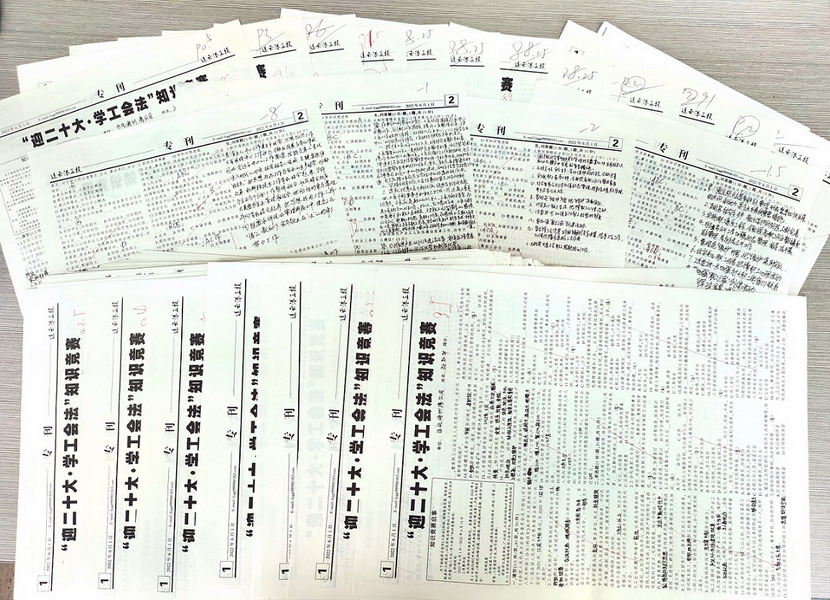 知識競賽采取書面答題形式,共發(fā)放試卷40份,競賽內(nèi)容主要來自2022年1月1日施行的《中華人民共和國工會法》(修正案)、產(chǎn)改工作相關知識等。經(jīng)集團批閱,評選出一等獎3名、二等獎4名、三等獎3名,并得到集團發(fā)放的讀書卡進行獎勵。