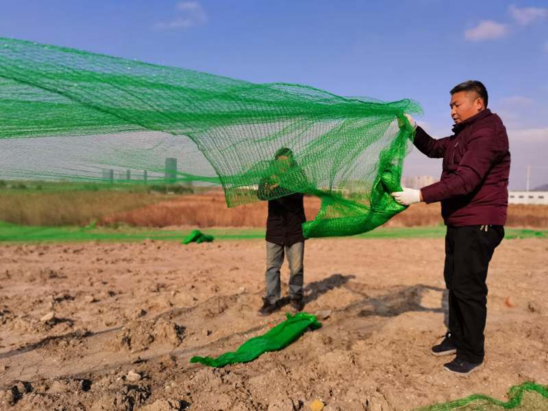一名黨員就是一面旗幟,十余處山丘上,不只是一面“黨員突擊隊(duì)”旗,而是幾十上百面的“戰(zhàn)旗”。在鮮紅旗幟的引領(lǐng)下,僅僅一天時(shí)間,突擊隊(duì)員們“沖鋒陷陣”,攻克一個(gè)又一個(gè)“山頭”,鋪設(shè)800余張防塵網(wǎng),共計(jì)200余畝裸土。