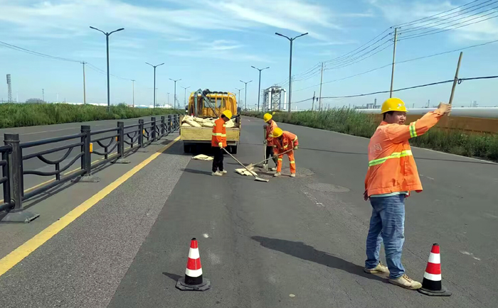 連日來(lái),市政分公司組織人員深入一線,加班加點(diǎn)對(duì)賽事路線內(nèi)的市政設(shè)施情況進(jìn)行全面摸底排查,對(duì)巡查發(fā)現(xiàn)的市政道路病害,有針對(duì)性地制定設(shè)施維修方案,精準(zhǔn)定向整治。 截止日前,該公司全體人員加班加點(diǎn)奮戰(zhàn)在一線,有序推進(jìn)各項(xiàng)維修工作進(jìn)程。當(dāng)前,已完成海濱大道、港前大道等多條瀝青路面維修186平方米、道路隔離欄更換維修86米;石化七道、石化三路等路段完成142平方米人行道磚鋪設(shè)、28米路緣石和73個(gè)擋車石維修工作;在疏港大道與海濱大道交叉口道邊加裝波形護(hù)欄220米;疏港大道、石化七道、石化三路更換維修雨排水管道168米;更換港前大道、石化區(qū)域內(nèi)鑄鐵檢查井蓋19個(gè)。